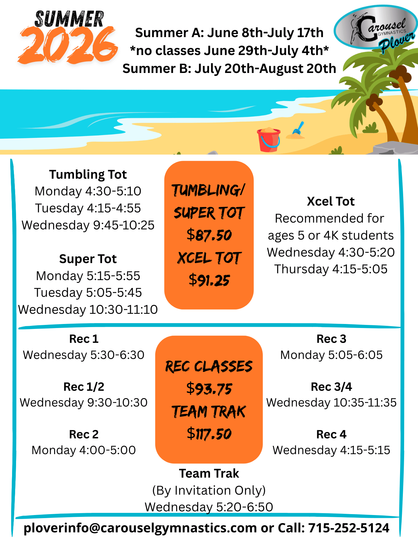 Carousel Gymnastics – Plover Gymnastics Schedule
